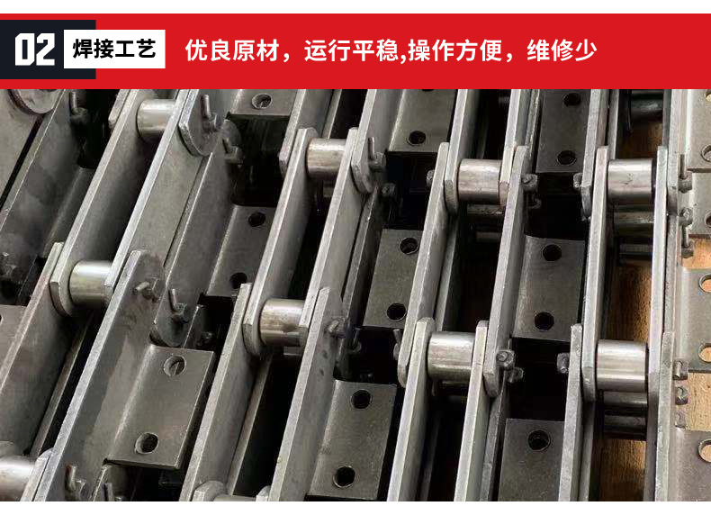 NE斗式提升機(jī)中都采用此種型號(hào)的鏈條,有NE15-NE800型號(hào),NE15斗式提升機(jī)是單鏈,把板鏈用螺栓和料斗直接緊固在一起就行(NE板鏈上有固定的螺絲孔),NE30以上的斗式提升機(jī)都是雙鏈條的,安裝時(shí)在料斗的兩側(cè)平行擺好板鏈鏈條,在斗式提升機(jī)料斗的左右兩側(cè)分別用螺栓把鏈條和料斗逐個(gè)螺緊即可。