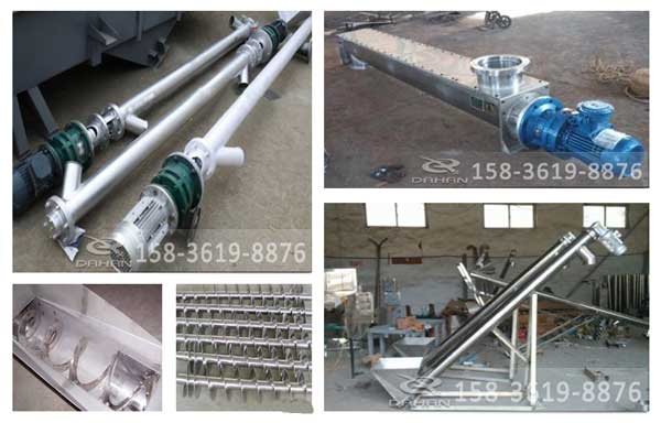 不銹鋼螺旋輸送機(jī)的幾種工作方法: 重力滑下法。螺旋輸送機(jī)螺旋的轉(zhuǎn)速較低,在螺旋面上的物料受到重力的影響遠(yuǎn)比離心力的影響大,由于螺旋的轉(zhuǎn)動(dòng)物料不斷沿螺旋面向下滑,于是產(chǎn)生軸向的位移,cx螺旋機(jī)基本上屬于此種原理。此種原理的螺旋機(jī)的填充系數(shù)值一般都小于05。因?yàn)槌涮钸^多,物料不是沿螺旋面滑下,而是被螺旋的攪動(dòng)使它翻越螺旋軸落下,并不能獲得大的軸向速度。既然慢速螺旋的物料受重力的影響較大,顯然它不能用于垂直螺旋或傾斜角較大的向上輸送情況。 滑下法原理,雖然廿值小,輸送能力低,但物料處于輕松散的自由滾落的狀態(tài),較少受到擠壓,適用于易結(jié)塊、磨琢性大的物料。當(dāng)采用標(biāo)準(zhǔn)螺旋時(shí),不但能保持較快的滑下速度,并且對(duì)傾斜輸送有一定的適應(yīng)能力(傾角一般在20°以內(nèi))。 推擠法。此法用于倉(cāng)底的卸料輸送螺旋,物料經(jīng)常充滿螺旋,顆粒物料受到的靜壓較大,每粒物料本身的重力遠(yuǎn)小于其他作用力(螺旋推力、摩擦力、靜壓力)。此種螺旋的阻力是很大的,它要克服較大壓力下形成的摩擦力。工作時(shí)物料好象是螺母,螺旋起螺釘似的作用,只要螺母不轉(zhuǎn)動(dòng)(或轉(zhuǎn)動(dòng)較慢),利用螺釘?shù)男D(zhuǎn),就可以使螺母沿軸向移動(dòng),倉(cāng)底卸料螺旋常采用變節(jié)距螺旋,在出口端的節(jié)距較大。 離心誘導(dǎo)法。用于垂直的傾斜度較陡的螺旋輸送機(jī),或轉(zhuǎn)速較高的螺旋輸送機(jī),其工作特點(diǎn)是物料充填量介于兩種之間,在螺旋的高轉(zhuǎn)速下,松散的物料受到離心力的作用遠(yuǎn)比重力等其他外力的影響大。