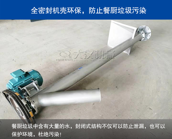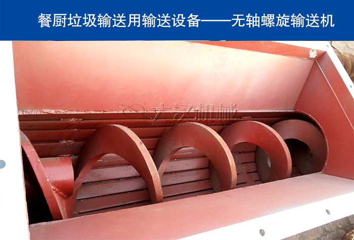 無軸螺旋輸送機采用全封閉輸送和易清洗的螺旋表面,全封閉的結構也可以保障可保證餐廚垃圾在輸送過程中發生物料飛濺和泄漏問題,從而保護環境衛生和所送物料不受污染、不泄漏。