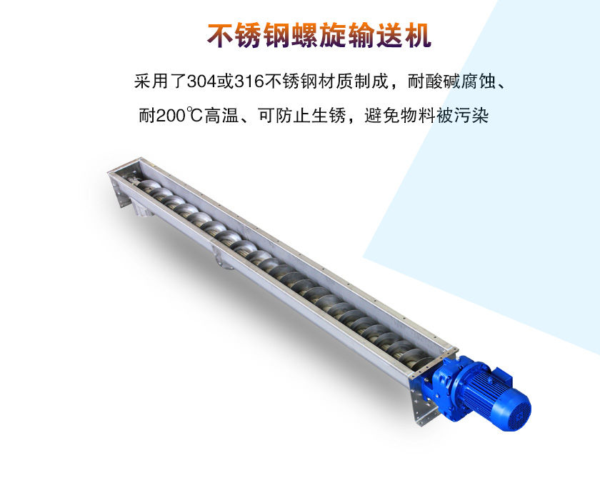 不銹鋼螺旋輸送機采用了304或316不銹鋼材質制成,耐酸堿腐蝕、耐200℃高溫、可防止生銹,避免物料被污染,是食品、醫藥行業專用的一種輸送機設備,那么不銹鋼螺旋輸送機多少錢一臺呢?接下來就來為您介紹一下: